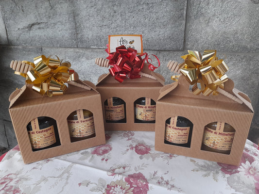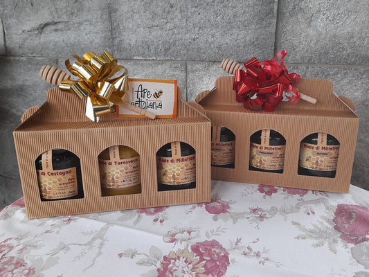 [101] Confezione regalo con 3 vasetti di Miele e Spargimiele