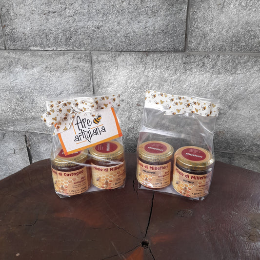 [100] Confezione regalo con 2 vasetti di Miele e spargimiele